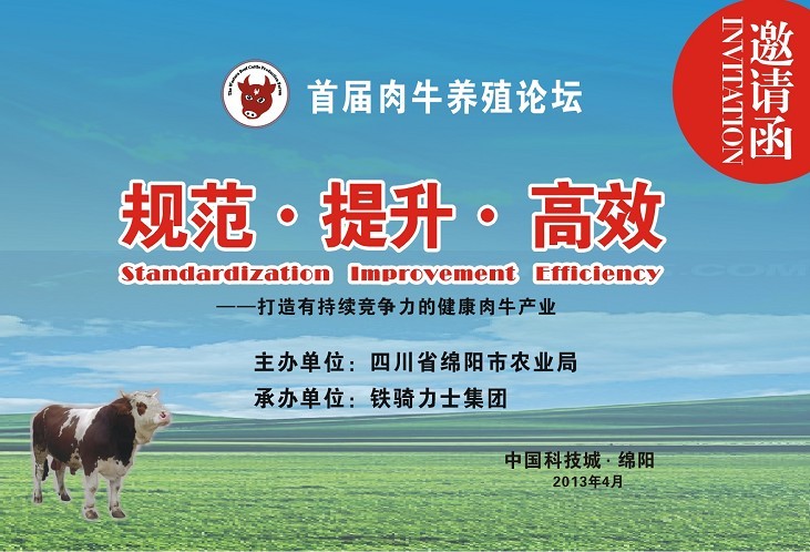 為此,四川省綿陽市農業局主辦的中國西部論壇——首屆肉牛養殖論壇,將于2013年4月22-23日在中國科技城.綿陽召開。
