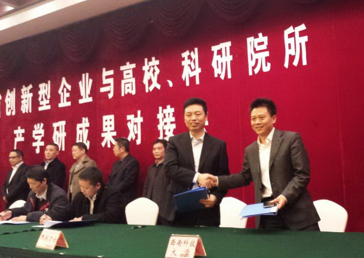 12月12日,由四川省經信委、省教育廳、中科院成都分院聯合主辦的全省創新型企業與高校、科研院所產學研成果對接會在綿陽召開。鐵騎力士集團總裁馮光德參加會議。會上, 創新型企業的300多條技術需求信息與高校科研院所的811項可轉化創新成果正式“見面相親”,并現場簽訂合作協議64項。這也是四川省首次舉行創新型企業與高校科研院所產學研成果的現場對接會。