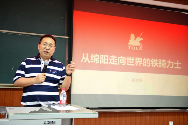 雷總從探秘神奇的綿陽,造就商業、科技、歷史等影響世界的人、物入手,立足鐵騎力士集團的發展歷程,緊密聯系綿陽與西南科技大學的人文情懷,深情并茂地闡述了集團與其個人的人生準則與感悟,并對未來鐵騎力士與西南科技大學強強合作的方向進行了暢想。整場講座圖文并茂,簡潔深刻,并積極與大家互動,師生們紛紛表示受益匪淺。