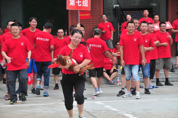 7日下午,一場以“親近產品 快樂開跑”的企業文化節熱鬧開演,傳統的的拔河、潑水,石頭剪刀布又加上了創新的演繹,你潑我擋,笑料不斷。熱愛產品、親近產品的理念也在活動中得到升華,抱小豬接力賽熱鬧非凡,除了奮力爭勝,大家還格外愛護自己抱著的小豬,寧愿自己受傷,也不讓小豬跌下來。