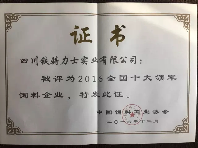 12月9日,中國飼料工業協會第七次會員代表大會在北京隆重召開,大會進行了換屆選舉,并對在2016年表現突出的企業進行了表彰,鐵騎力士集團不僅連任副會長單位,更是一舉奪得最具份量的“2016全國十大領軍飼料企業”大獎。